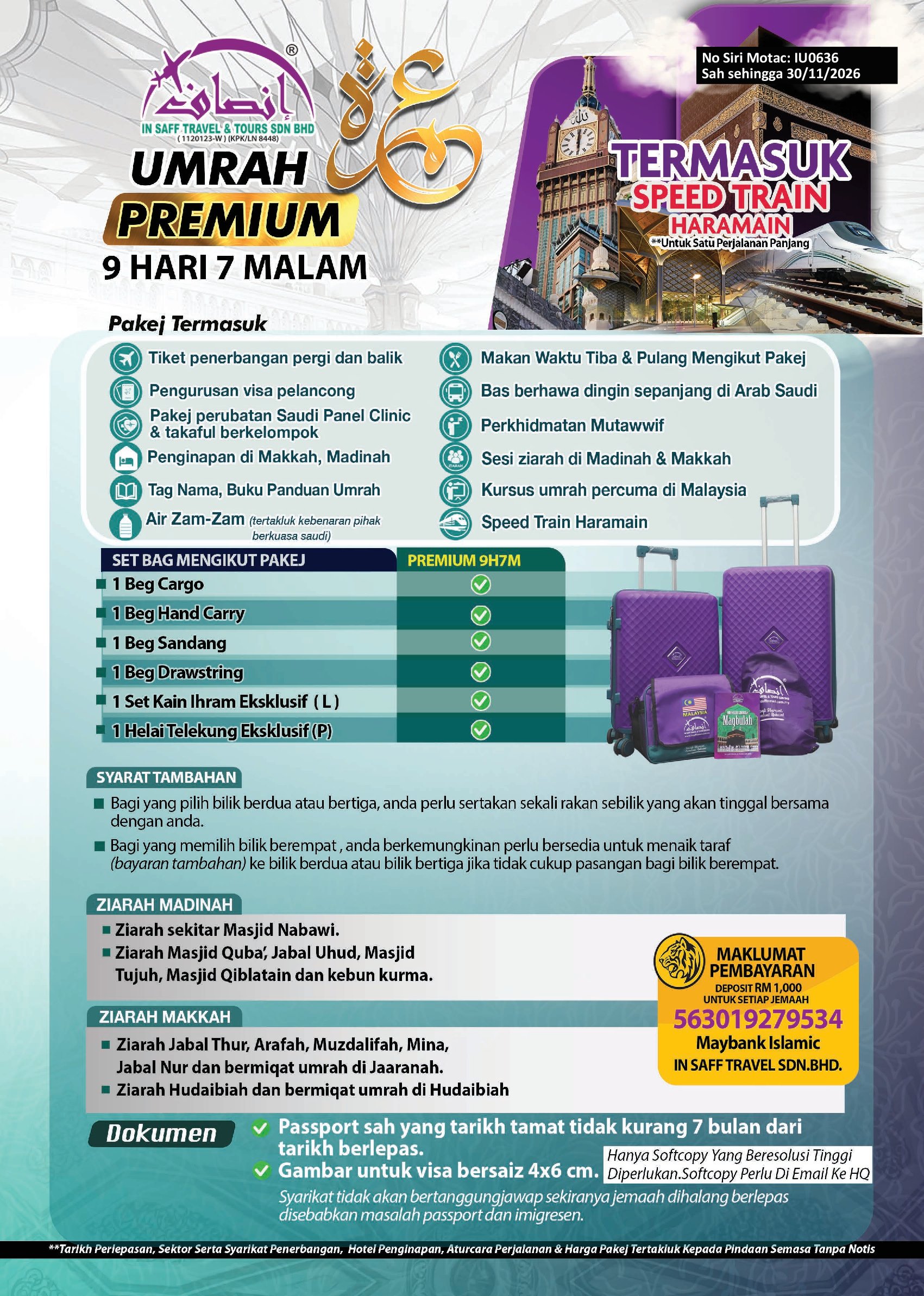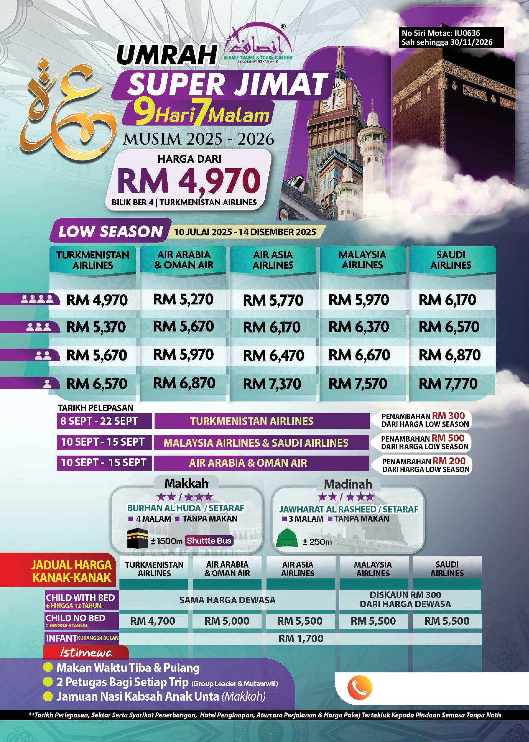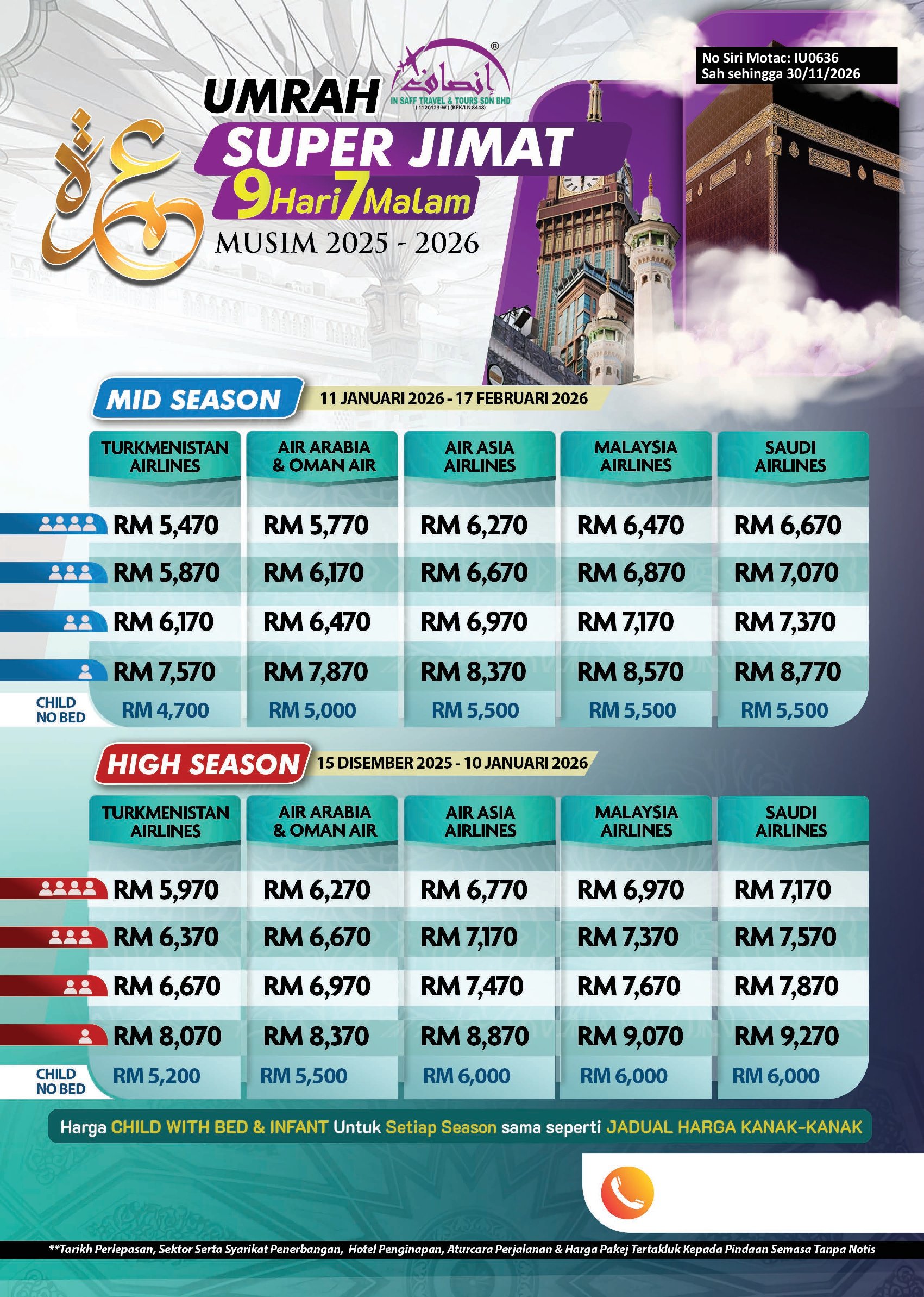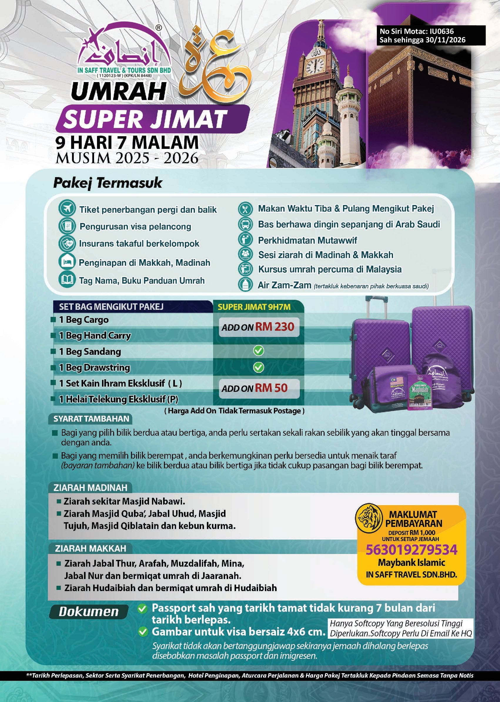 Pakej Umrah 9 Hari 7 Malam Super Jimat: