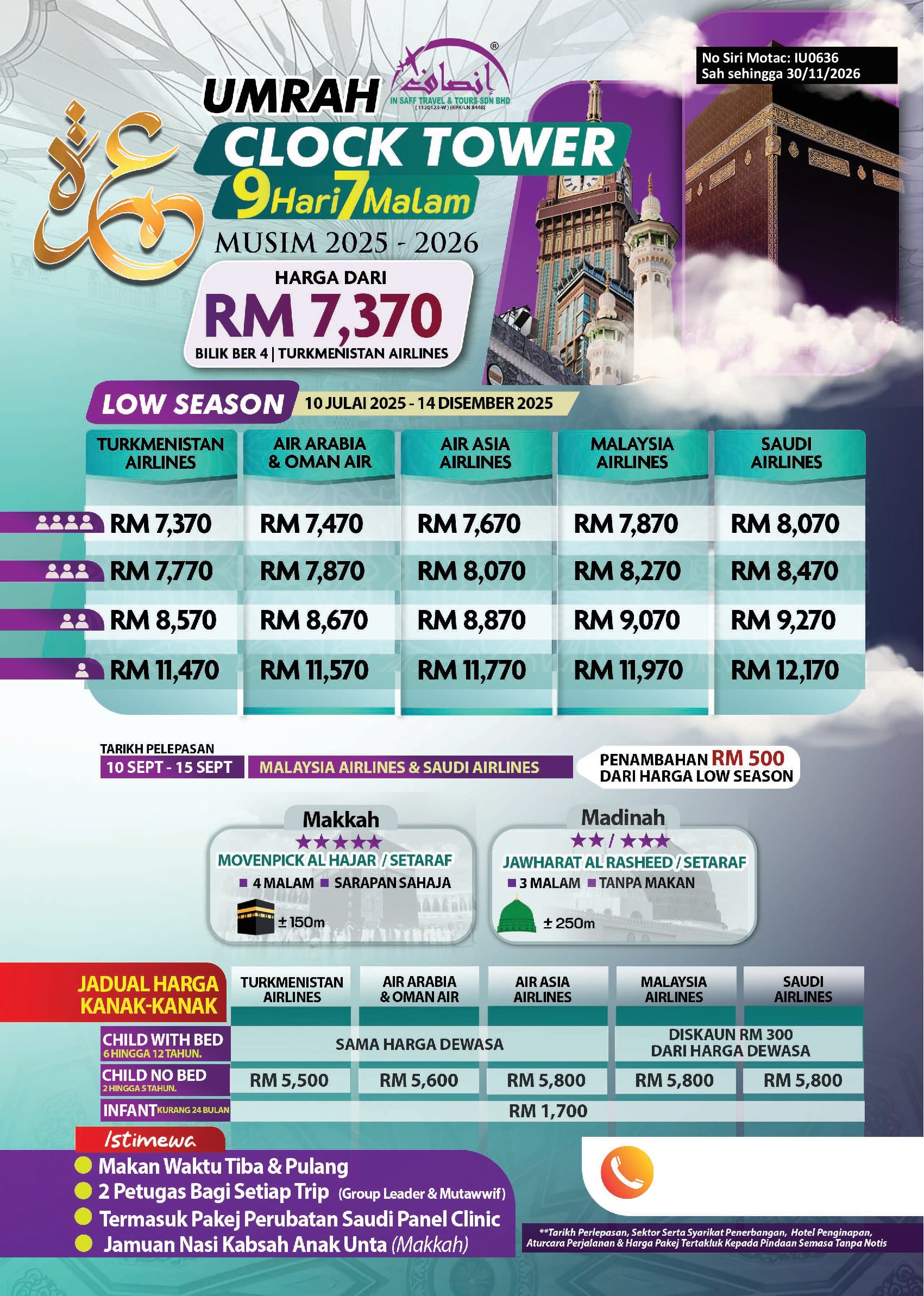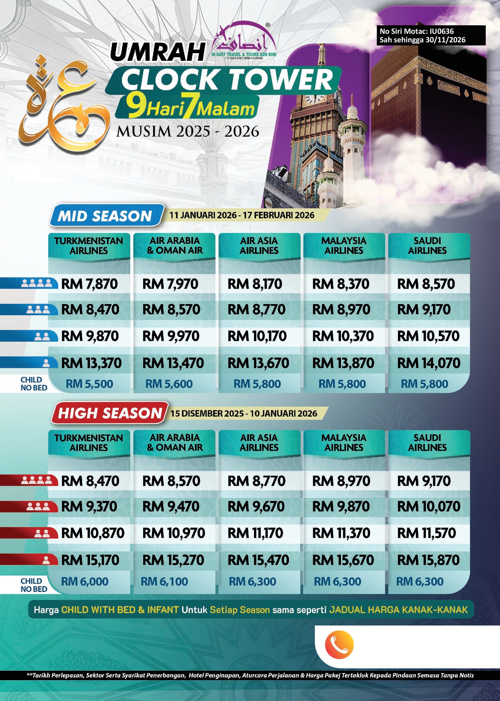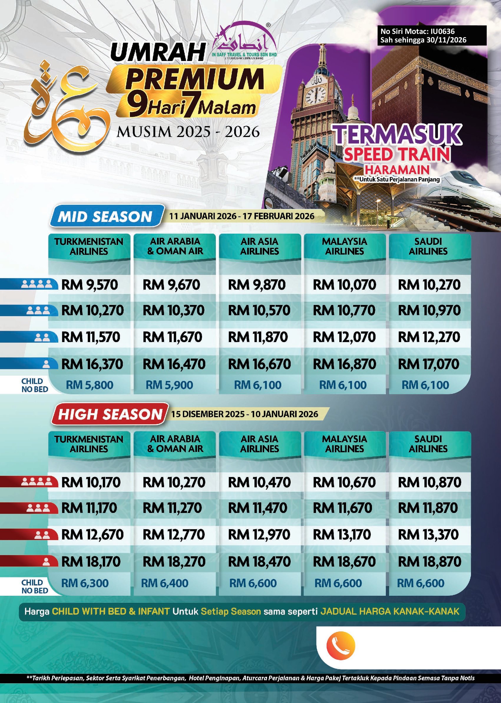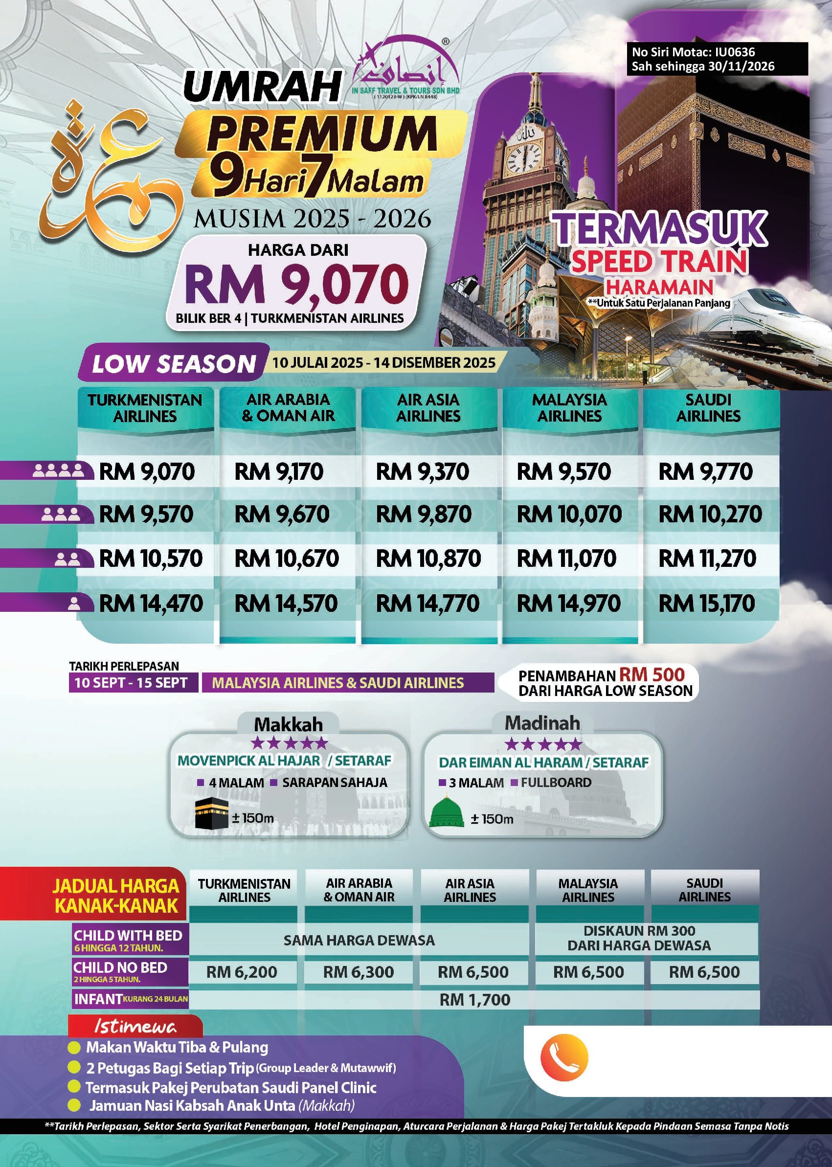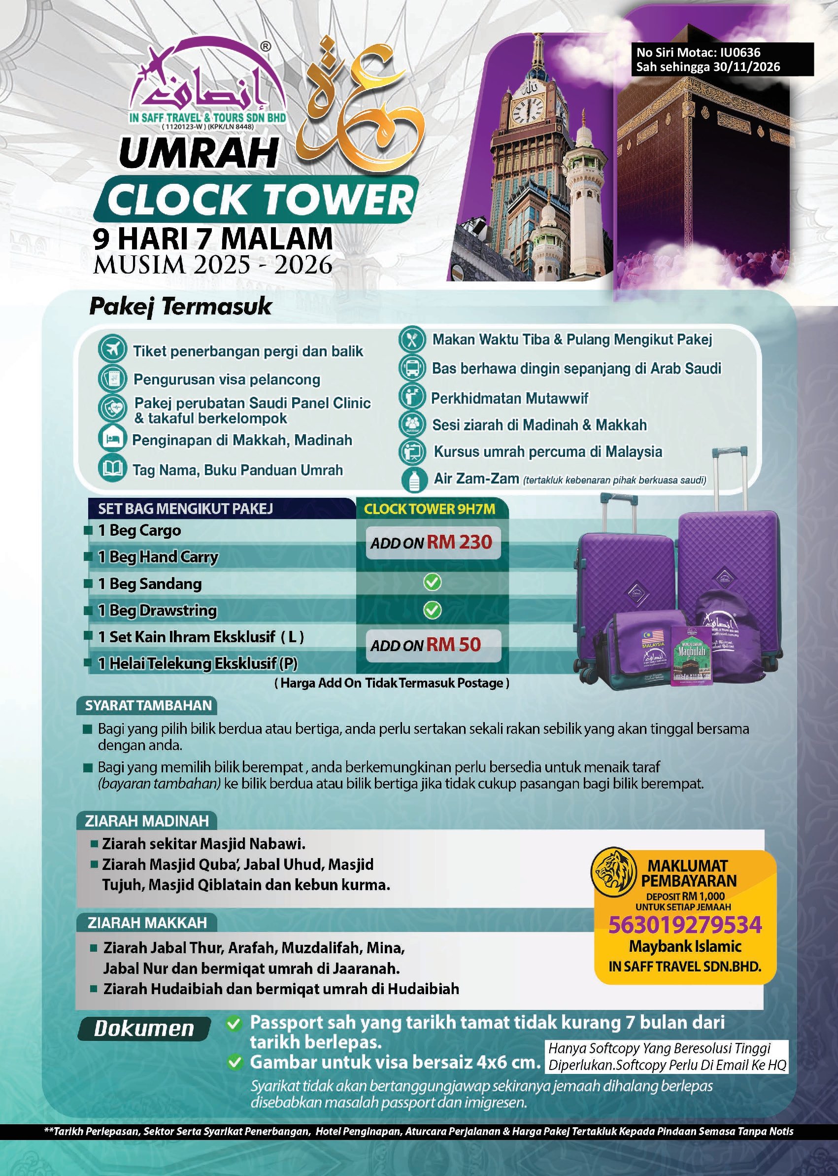 Pakej Umrah 9 Hari 7 Malam Super Jimat: